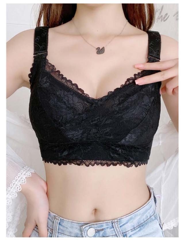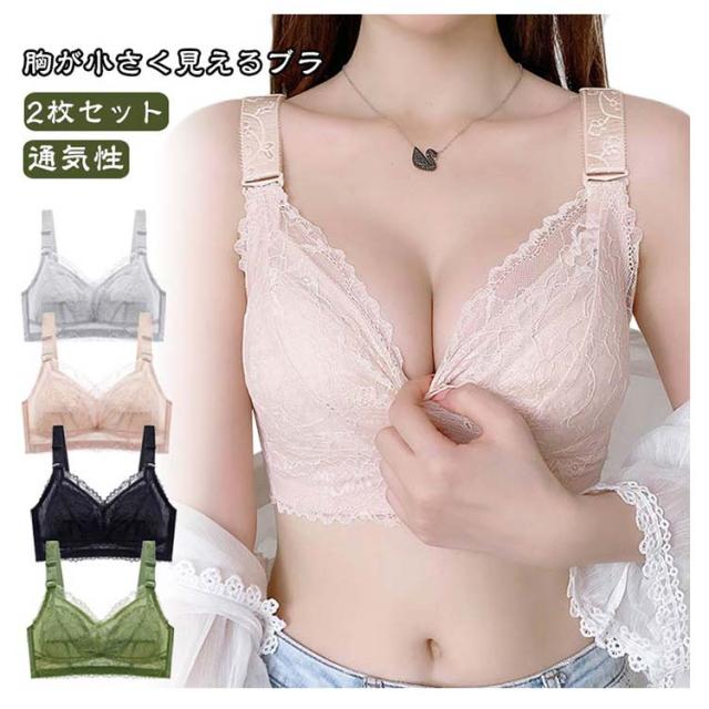 薄手 2枚セット レディース 胸が小さく見えるブラ 総レース 胸を小さく見せるブラジャー ブラジャー 花柄レース カップ付き 可愛い レースデザイン 通気性 小さく見せるブラ ノンワイヤーブラジャー 2枚セット 着痩せブラ 育乳ブラジャー