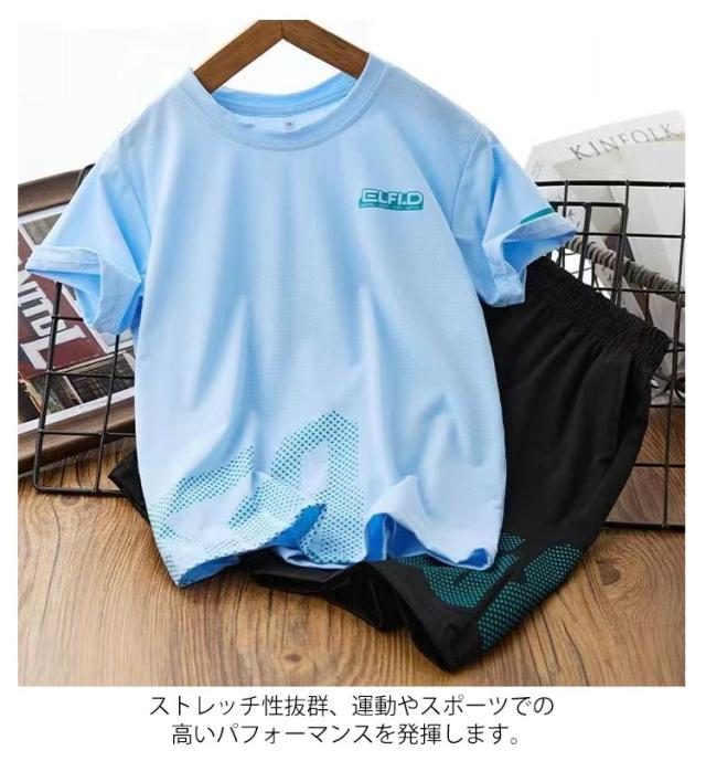 体操服 男の子 半袖Tシャツ+ハーフパンツ上下セットアップ スポーツウェア 2点 夏服 薄手 ジャージ 吸汗速乾 子供服 女の子 通気 キッズ カジュアル ジュニア 普段着 通学 スポーツウェア 運動服 サッカー トレーニング ランニング
