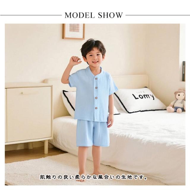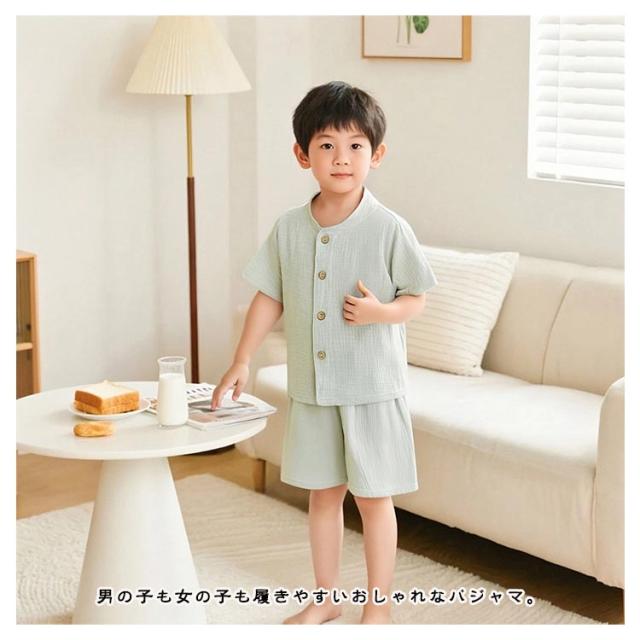 ガーゼ綿 パジャマ キッズ 半袖 夏 ルームウェア 部屋着 上下セット 女の子 男の子 可愛い かわいい 子供パジャマ 前開き ショートパンツ ハーフパンツ 寝巻 ナイトウェア セットアップ おしゃれ 90 100 110 120 130 140 150 160cm