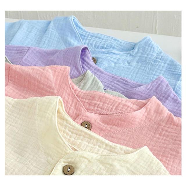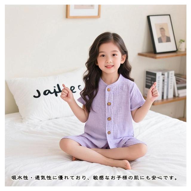 | 90-160cm!ガーゼ綿を使用、子供用の前開きパジャマ。 肌触りの良い柔らかな風合いの生地です。 吸水性・通気性に優れており、敏感なお子様の肌にも安心です。 男の子も女の子も履きやすいおしゃれなパジャマ。 | |