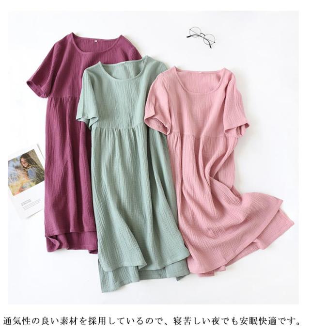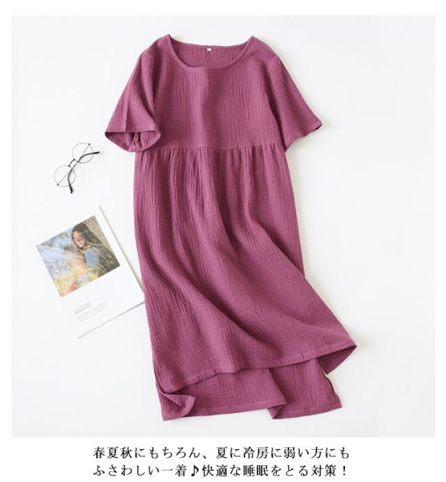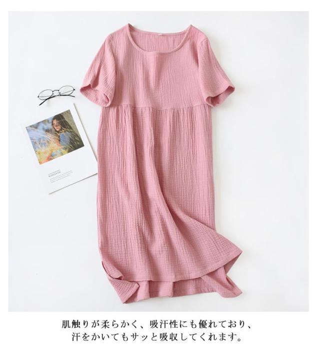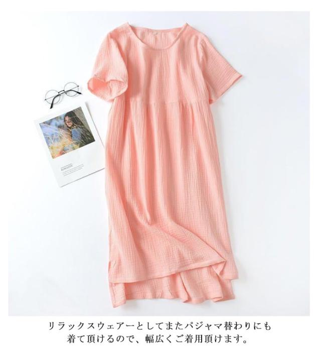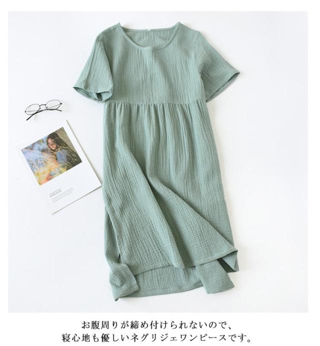 湯上り ワンピース ルームウェア 半袖 ガーゼワンピース ネグリジェ タオルワンピ ルームワンピース 綿100% 部屋着 コットン パジャマ 軽い ナイトウェア 寝巻き ガーゼワンピース 普段着 婦人服 寝間着