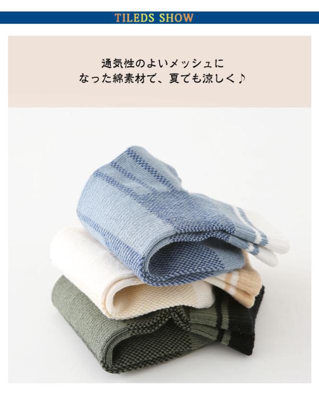 | 10足組!毎日履きたくなる靴下!通気性のよいメッシュになった綿素材で、夏でも涼しく♪ 通気性が高く履き心地の良い素材のため蒸れを防いで素足をやさしく包み込みますメッシュ靴下。 肌あたりが良く、通気性・吸湿性にも優れているので、汗によるベトつきも軽減! 伸びが良く足に柔らかくフィットして動きやすさもバッチリ◎ | |