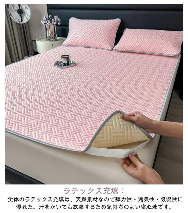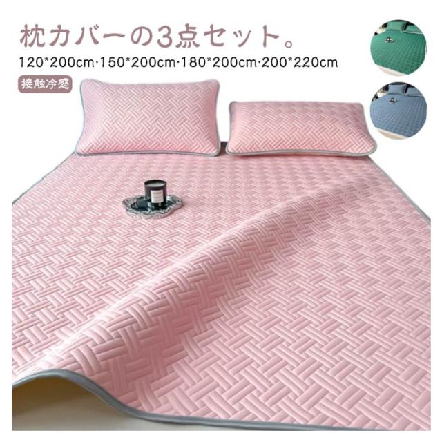 ひんやり 枕カバー 冷感敷きパット ひんやり 120*200cm セミダブル 3点セット クイーン ダブル ひんやり敷きパッド キング 150*200cm 180*220cm 200*220cm 接触冷感 ラテックス キルト クール敷きパッド