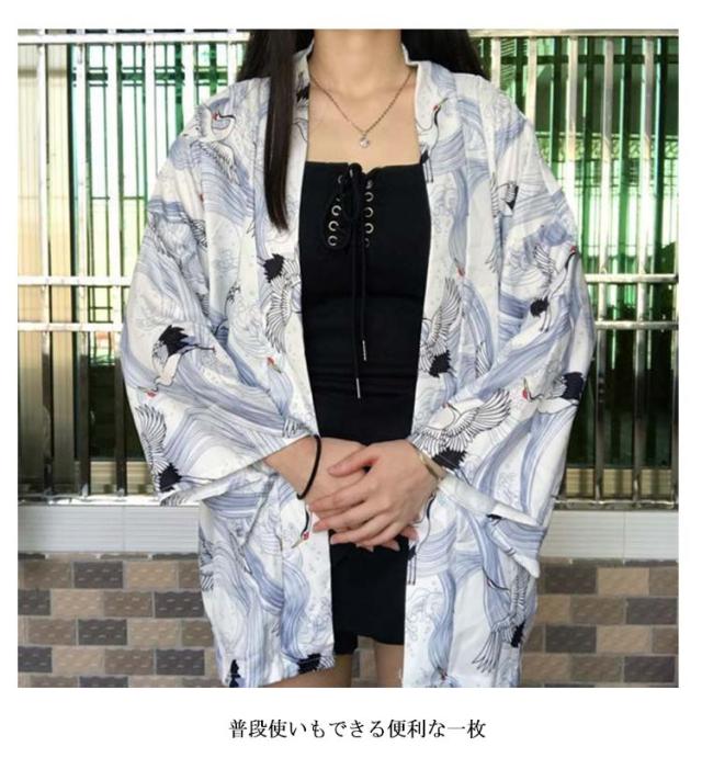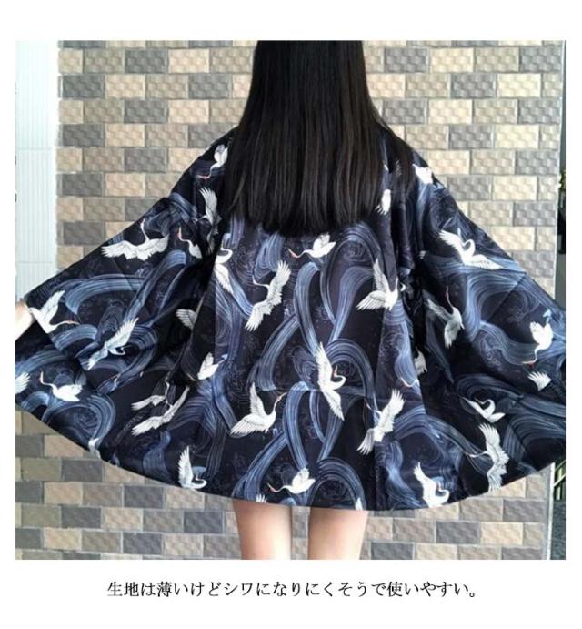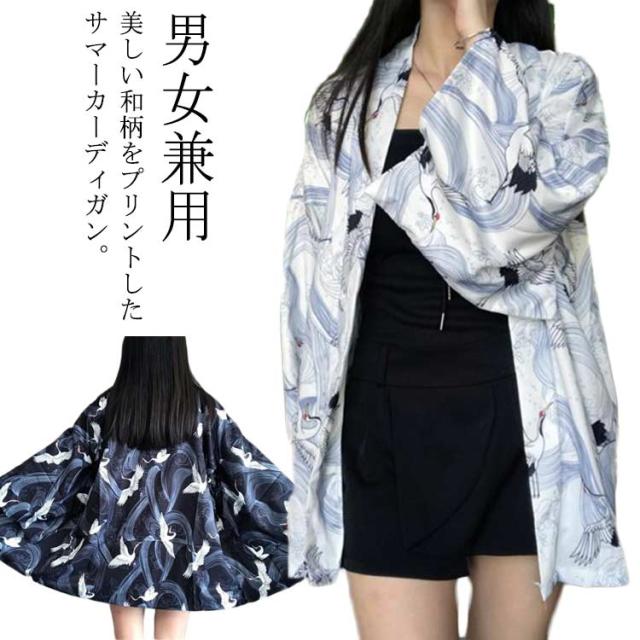 羽織 レディース メンズ カーディガン UVカット 七分袖 ゆったり 鶴柄 トップス アウター 夏 着物 浴衣 和風 羽織 法被 甚平 ダンス衣装 じんべえ コスプレ 花火大会 男女兼用 薄手 春夏秋 きれいめ おしゃれ トップス 原宿系 S M L XL XXL 送料無料