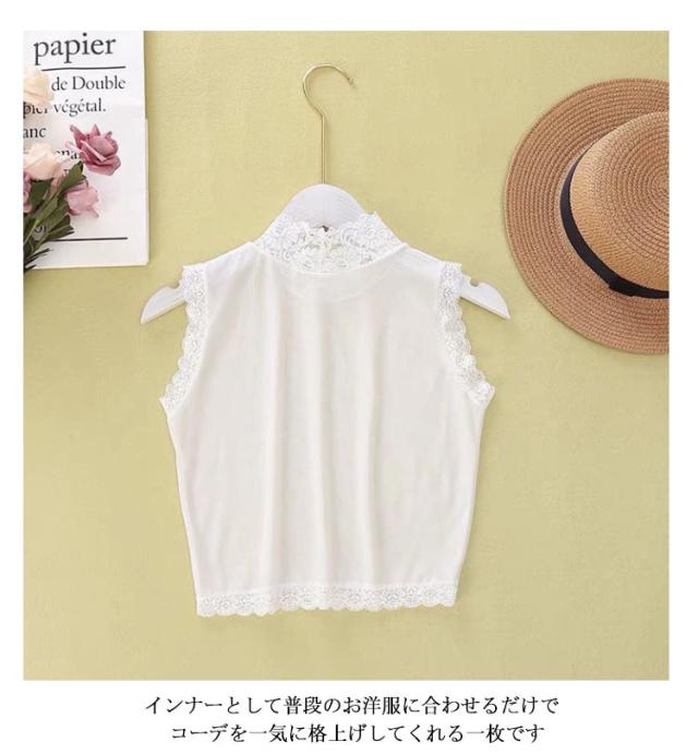 衿レース切替ハイネックタンクトップ ハイネック ノースリーブ ニット ハイネック レディース タンクトップ シースルー サマー ニット レース おしゃれ シースルー 薄手 レイヤード 無地 重ね着 オフィス インナー トップス 送料無料