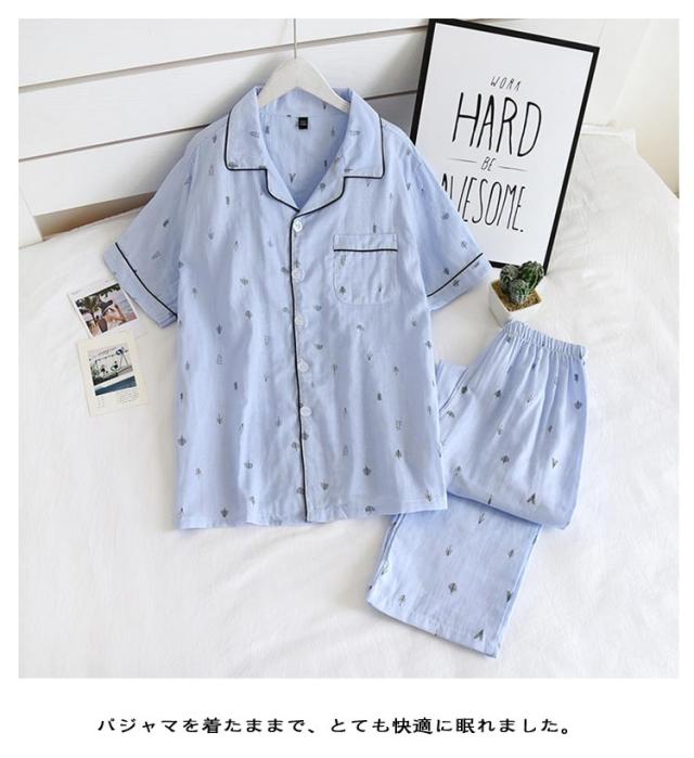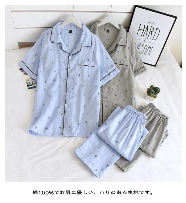 | 綿100%ダブルガーゼ メンズ用パジャマ上下セット 半袖トップス+ロングパンツ 肌触りが良くダブルガーゼ素材長時間の着用でも心地よく快適です 綿100%でお肌に優しい、ハリのある生地です。 通気性・吸水性にすぐれた素材でさらりと快適。 パジャマを着たままで、とても快適に眠れました。 パジャマでゆっくりお部屋時間♪ | |