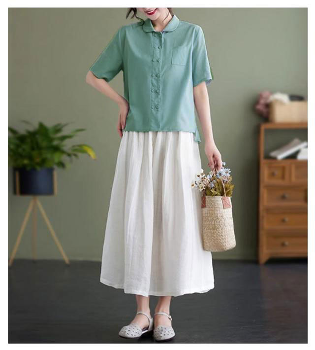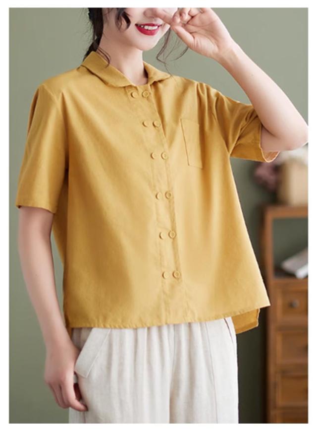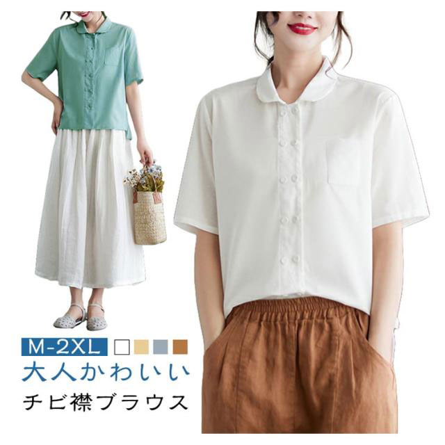 | 大人かわいい チビ襟ブラウス M-2XL 着映えする襟付きデザインのシャツブラウス。 ポロシャツのような襟のデザインと、 涼し気のある半袖、 そして適度なハリ感とこなれた雰囲気の綿混生地で、 シンプルなコーデもしっかりとおしゃれに魅せてくれます。 折り襟様子で女の子の可愛いを修飾できるな色なので、 色々なコーデができる。 ボタン式デザインがシャツにとわず、 ライトアウターとしてもいい | |