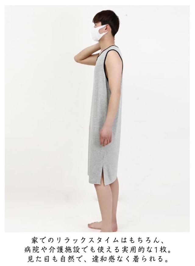 | 夏にぴったりなノースリーブワンピース型ルームウェア 着脱が簡単なストレスフリーデザイン 暑い季節でも快適に過ごせる、薄手で涼しいメンズ向けルームワンピース。風通しが良く、寝汗をかいてもサラッと快適。 前開きなしで、頭からすっぽりかぶるだけの簡単着脱。病院や介護、入院中にも便利な構造。 柔らかくてチクチクしない、通気性と吸汗性に優れた素材。素肌に直接着ても快適。 無地のミニマルデザインで、年齢問わず着用可能。ゆったりとしたサイズ感で締めつけ感ゼロ。 家でのリラックスタイムはもちろん、病院や介護施設でも使える実用的な1枚。見た目も自然で、違和感なく着られる。 | |