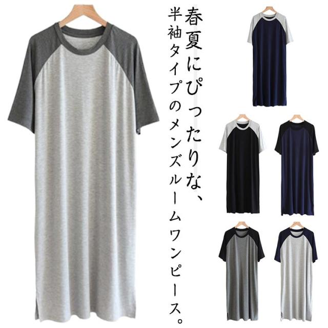 パジャマ ワンピースパジャマ 夏用 メンズ 半袖パジャマ 春夏 薄手 ルームウェア 大きいサイズ ルームウェア 寝巻き ナイトウェア 病院用 入院用 シンプル カジュアル 部屋着 通気性 寝間着 肌に優しい