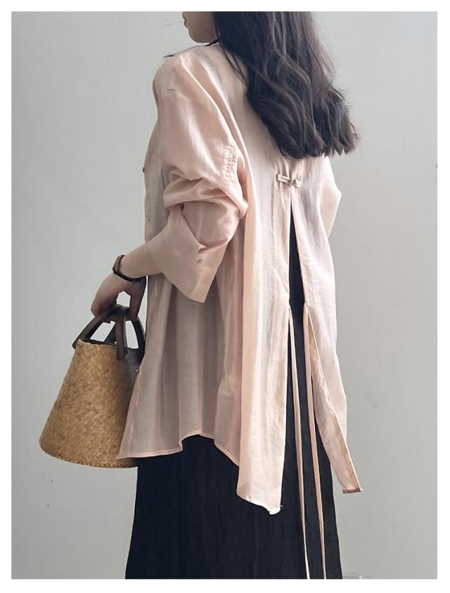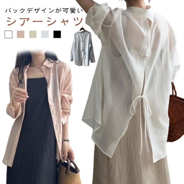 長袖 透け感 チャイナボタン レディース シアーシャツ 大人可愛い 無地 羽織 紫外線対策 薄手 UVカット 20代 シースルー 韓国風 人気 トレンド 冷房対策 30代 40代 シアーシャツ きれいめ シンプル お出かけ デート おしゃれ 通勤