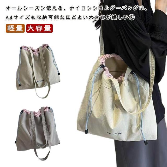 a4 レディース トート 巾着 大きめ ナイロン ショルダー 通勤バッグ 軽量 大容量 ショルダーバッグ トートバッグ ドローストリング マチあり ショルダーバッグ 肩掛け バッグ 鞄 きれいめ おしゃれ 大人 かわいい カジュアル 通勤 通学 旅行