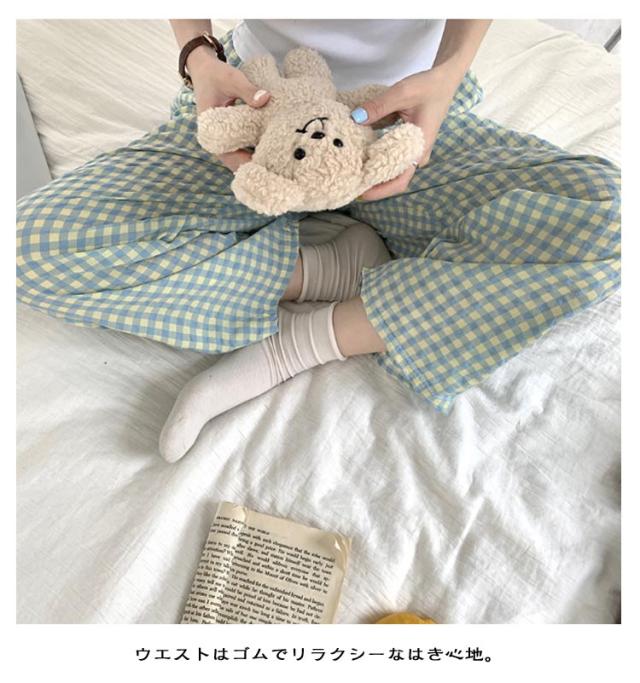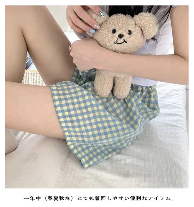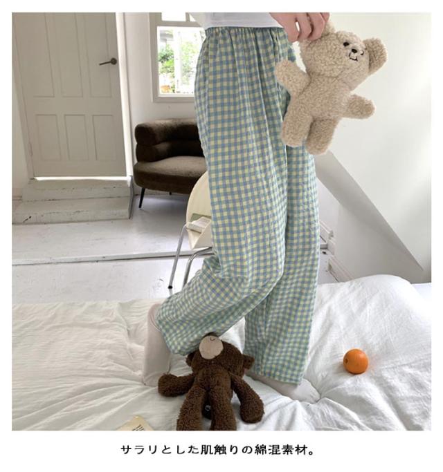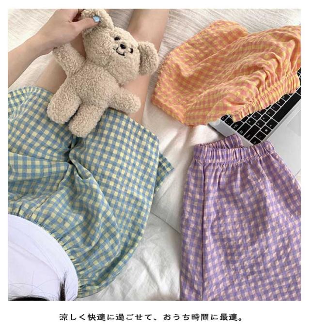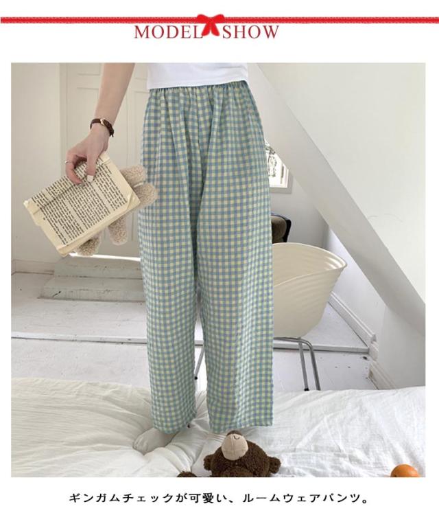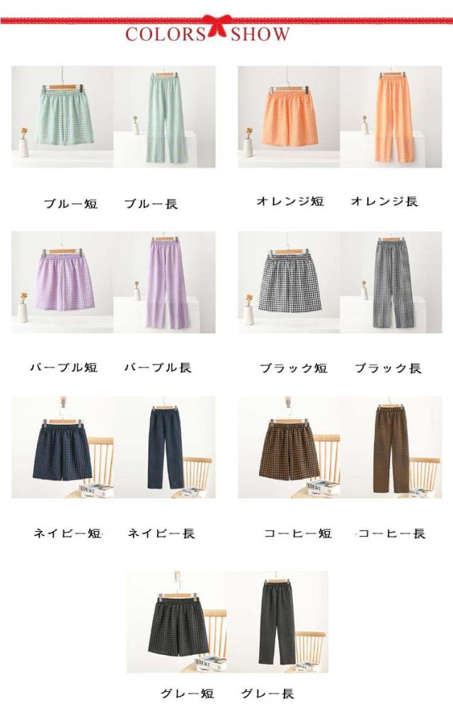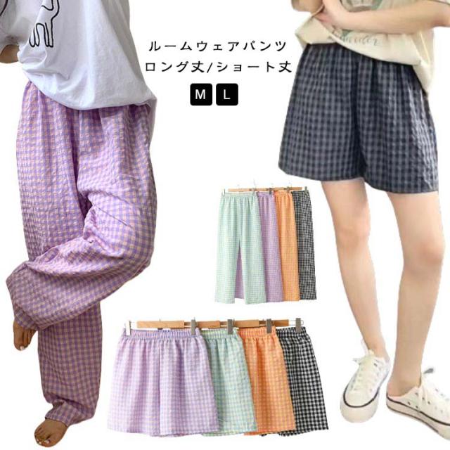 ギンガムチェック パンツ ルームウェア リラックスパンツ 薄手 ルームパンツ 綿 ロングパンツ ショートパンツ 涼しい 部屋着 ルームウェア 夏 ズボン レディース パジャマ コットン ナイトウェア 短パン