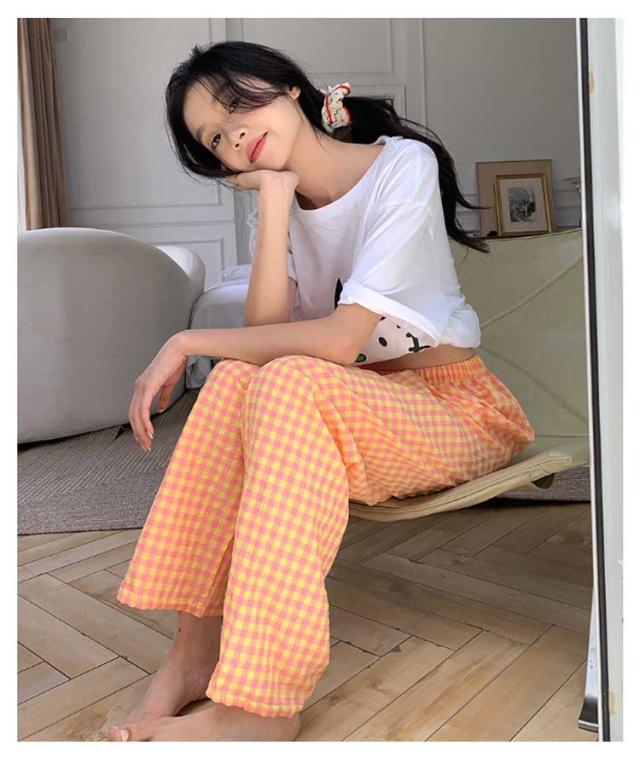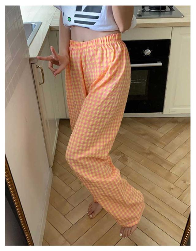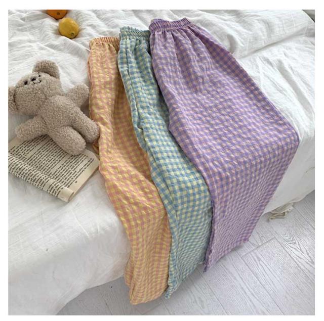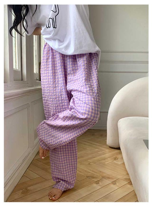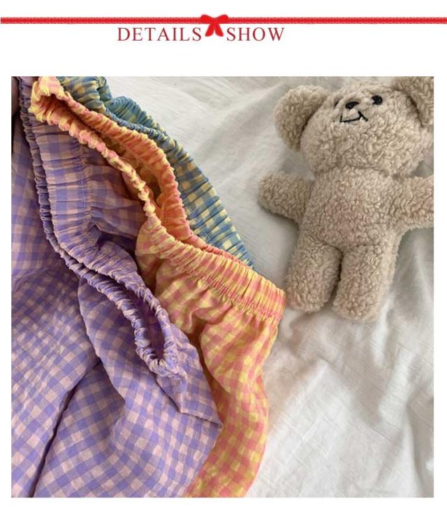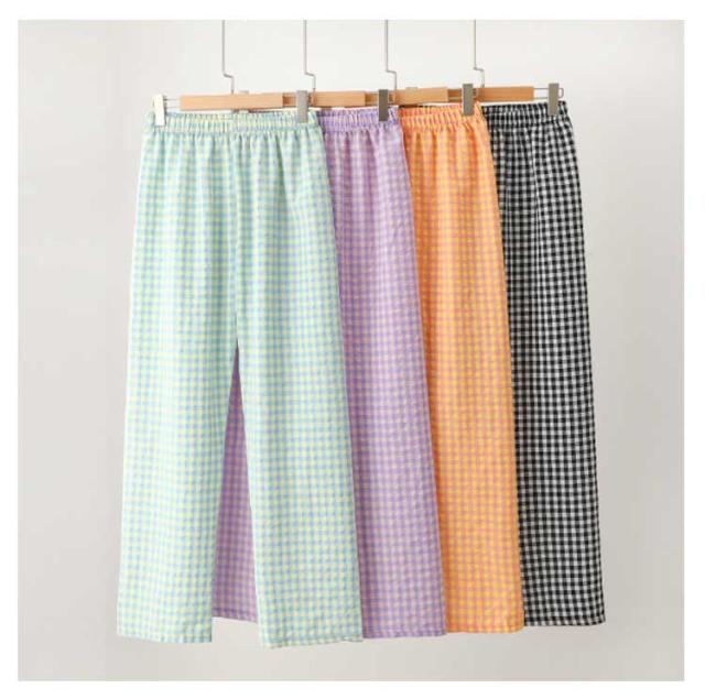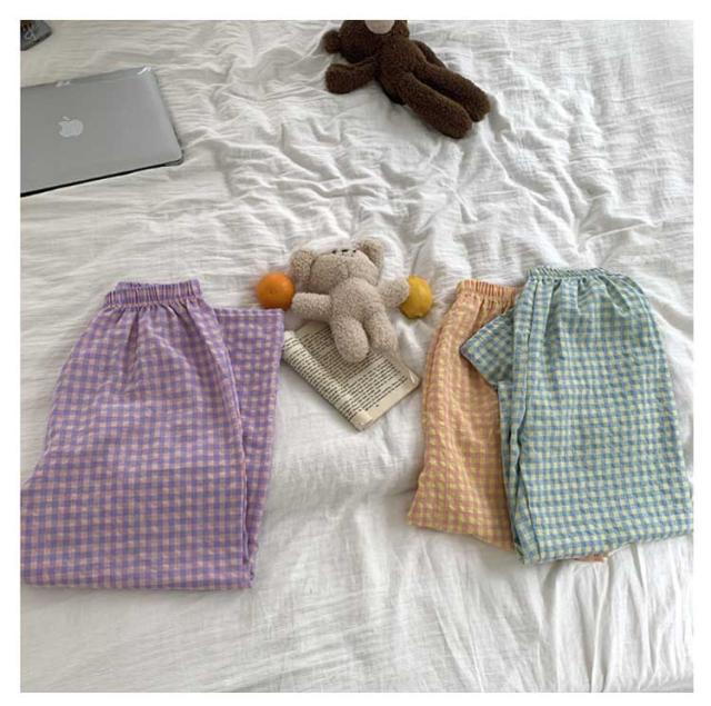 ギンガムチェック パンツ ルームウェア リラックスパンツ 薄手 ルームパンツ 綿 ロングパンツ ショートパンツ 涼しい 部屋着 ルームウェア 夏 ズボン レディース パジャマ コットン ナイトウェア 短パン
