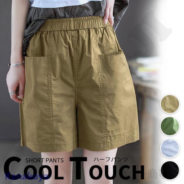 ハーフパンツ レディース 夏 涼しい ボトムス ワイドパンツ カーゴパンツ 薄手 半ズボン カジュアル ウエストゴム 無地 膝丈 膝上 半ズボン
