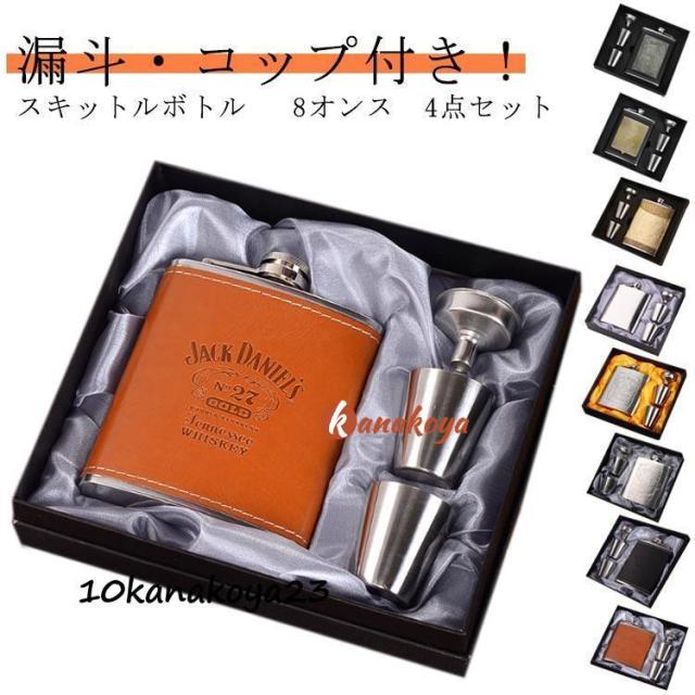 スキットル スキットルボトル ウイスキーボトル 8オンス 7オンス 8oz 携帯用 小型水筒 ステンレス製 漏斗付き コップ付き