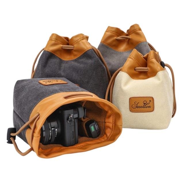 | 表地は丈夫なキャンバス生地で、裏地は柔らかいボアフリースを使用したカメラバッグ。【撥水加工】【3サイズ】 一眼レフカメラやミラーレス一眼、レンズの収納・持ち運びに便利なカメラポーチです。 取り出しやすい巾着タイプ。 防水機能にもすぐれ、大切なカメラを傷や汚れから守ります。 ショルダーストラップ付き。 | |