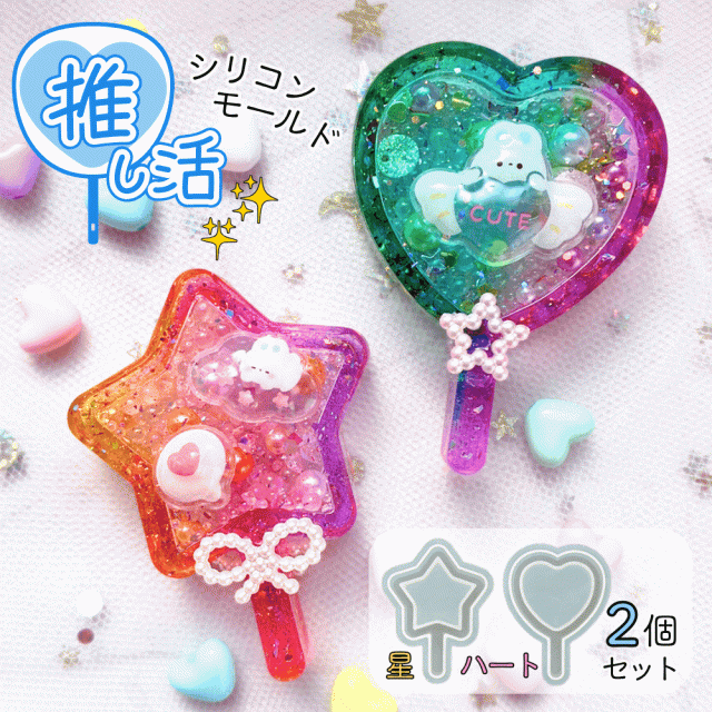 推し活 シリコンモールド レジン型 2個セット グッズ オタ活 星 ハート シェイカーモールド シャカシャカ シリコン型 うちわ型 キーホルダー チャーム ハンドメイド クラフト 初心者OK Ailes(エール)