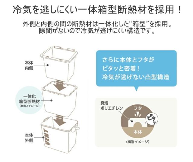蓋・本体・ハンドル・バックル・ベルト:ポリプロピレン 蓋パッキン:発砲ポリエチレン 断熱材:発砲スチロール |