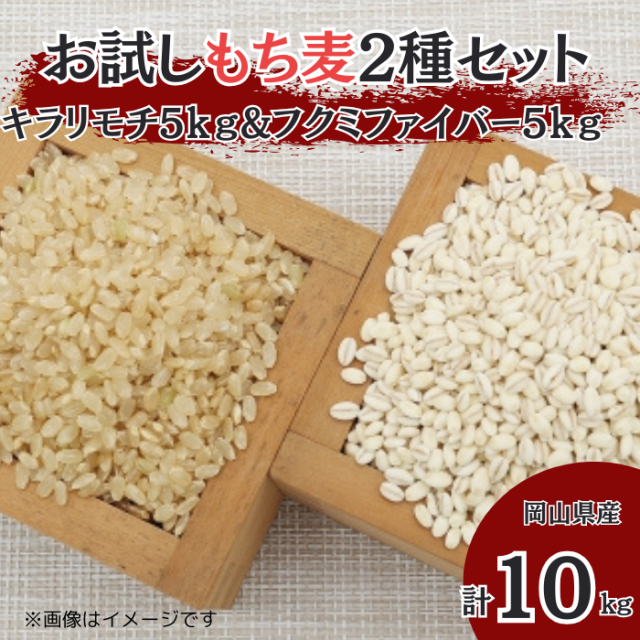 お試しもち麦2種セット 岡山県産 キラリモチ フクミファイバー 計10kg 各5kg