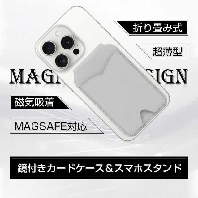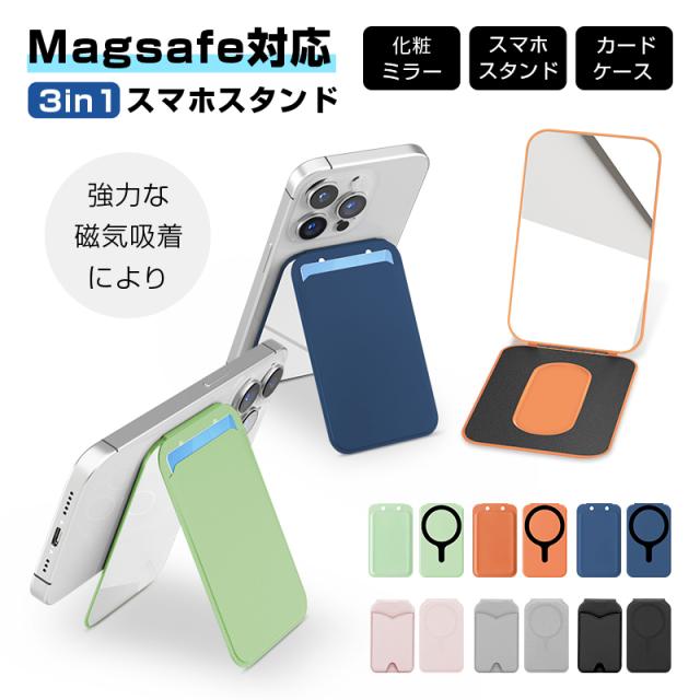 ミラー付きスマホスタンド MagSafe対応 マグセーフ マグネットスタンド ミラー 鏡 手鏡 メイク メイクチェック メイクアップ メイク道具 身だしなみチェック マグネット式 折り畳み式 PU 磁力強化 瞬間吸着 薄型 軽量 コンパクト 2026年新作 卓上 iPhone/Android対応