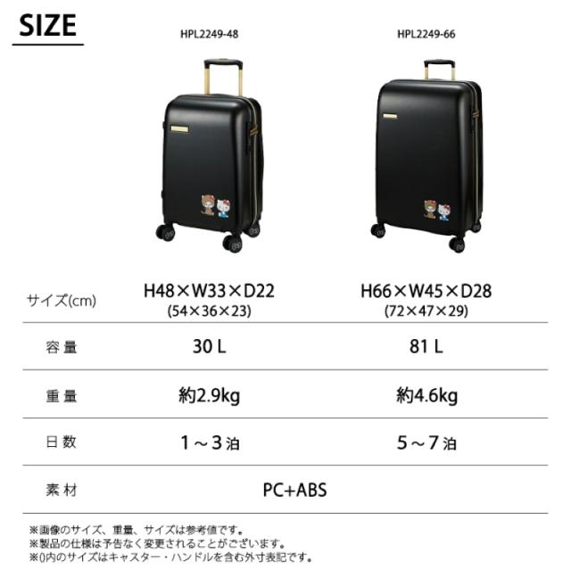 シフレ スーツケース モンチッチ × ハローキティ Lサイズ 81L カップホルダー付き ジッパータイプ HPL2249-66 siffler キャリーケース