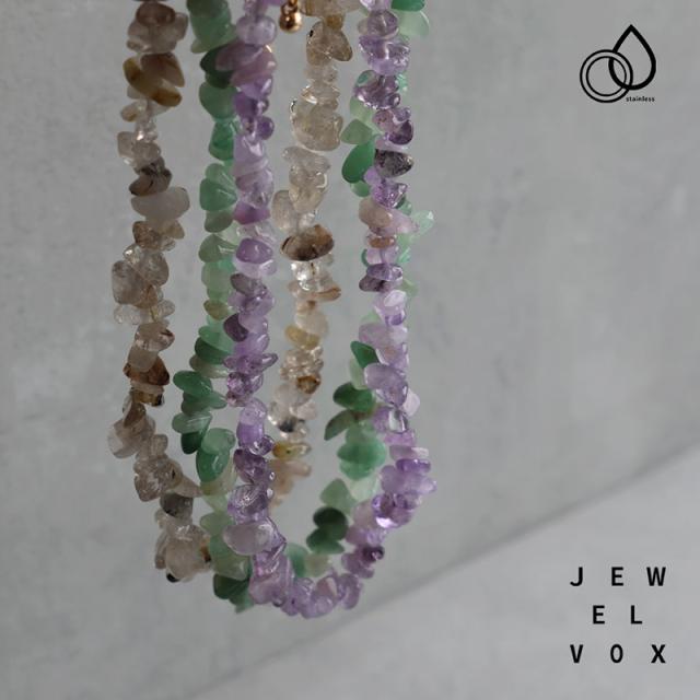 様々なサイズ・色の透明感のある天然石ストーンが春夏トップスのアクセントにぴったり!