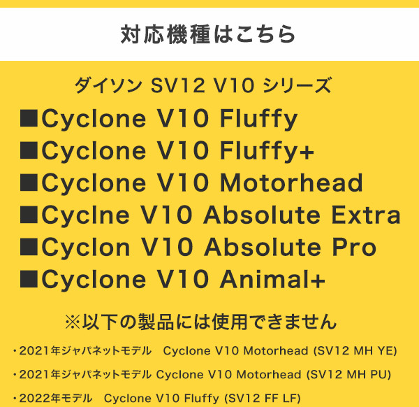 多くのV10シリーズモデルに対応し、簡単に取り付けできるので交換の手間が最小限です。