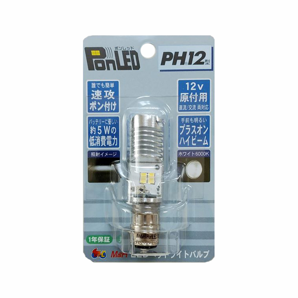 ポンレッド PonLED PH12 ホワイト6000K PL102 [原付 小型バイク 二輪 バイク用品 M&Hマツシマ]