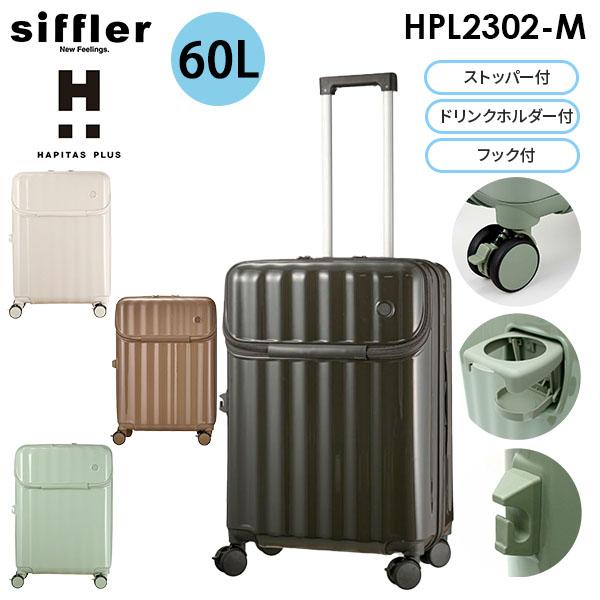 siffler HAPITAS PLUS シフレ ハピタスプラス 60L Mサイズ 3~5泊用 ストッパー搭載 ドリンクホルダー付き フック付き ファスナータイプ スーツケース トップオープン仕様 HPL2302-M