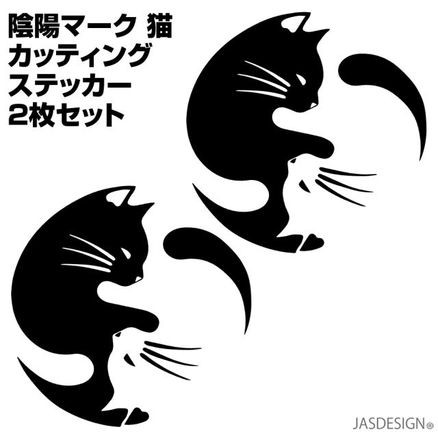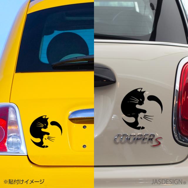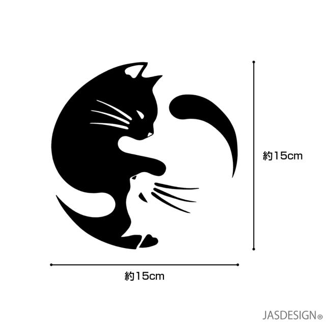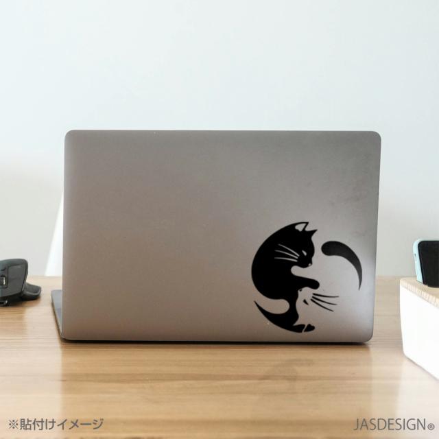 猫 ステッカー 車 カーステッカー ネコ バイク ヘルメット 傷隠し 壁 ウォール パソコン スマホ かわいい おもしろ 防水 シール カッティングステッカー デカール 黒猫 白猫 陰陽 寝てる ブラック 2枚セット 送料無料 JM-412