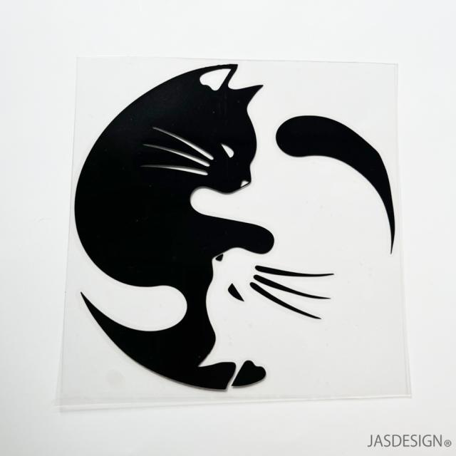 白と黒の2匹の猫が陰陽模様のように抱き合って眠る姿がとってもかわいいキャットシルエットステッカーです。