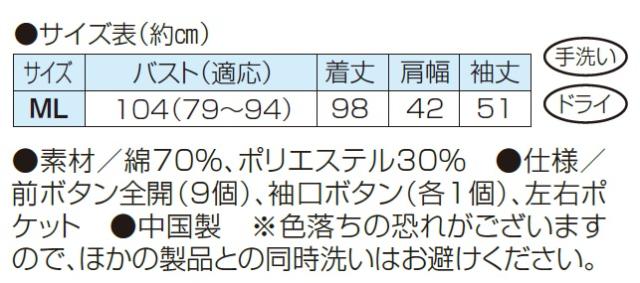 ●仕様/前ボタン全開(9個)、袖口ボタン(各1個)、左右ポケット