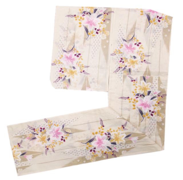 浴衣 ふくよかさん 2L〜3L 淡ベージュ地百合矢絣撫子 女性用 単品 レディース 大きいサイズ 綿 ゆかた ぽっちゃり ポッチャリ LL 高身長 幅広