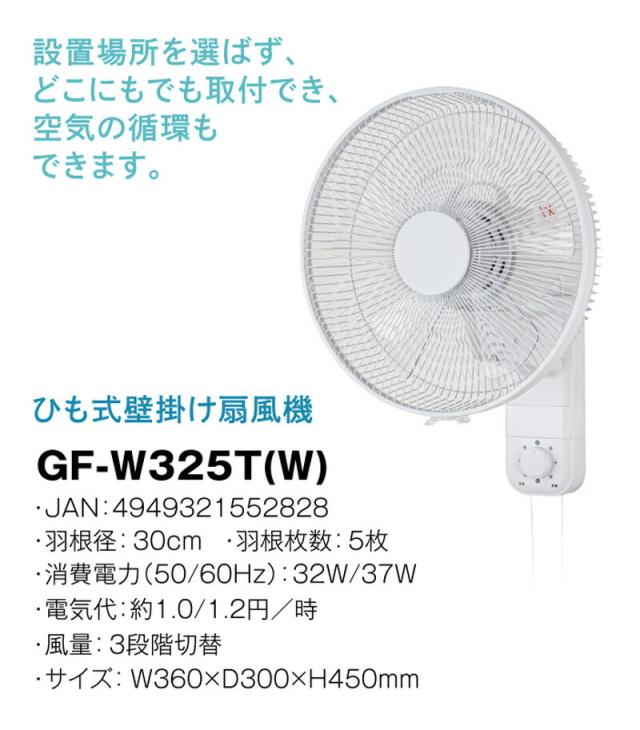 ひも式壁掛け扇風機 GF-W325T(W) おおたけ ひも式 壁掛け扇風機 30cm 5枚羽根 首振り 紐式 壁かけ扇風機 風量3段階 冷暖房効率アップ スペース有効活用 壁掛けサーキュレーター ![]() ![]() ![]() | ||||