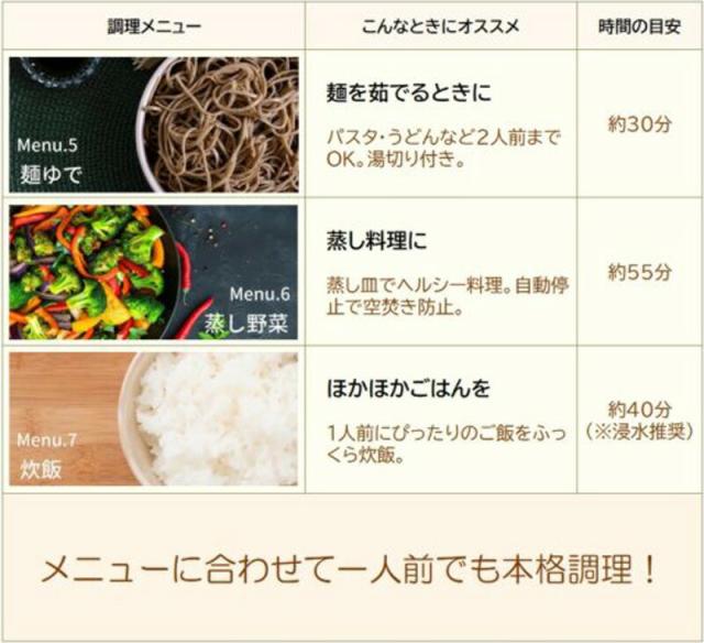 プライベート調理器 My Cook NEO KI-40549 クマザキエイム 電気調理鍋 メニューを選ぶだけ 手軽 1人前 本格調理 タッチパネル 簡単操作 煮る 蒸す 炒める 炊く 卓上 料理 ほったらかし調理 ![]() ![]() 1人前 に ピッタリ! 食材をムラなく加熱 大きく見やすい タッチパネル 多彩な調理メニュー 調理をもっと便利にする付属アイテム 20種類の レシピブック付き お手入れもかんたん 空間になじむ、シンプル&スマートなデザイン | ||||