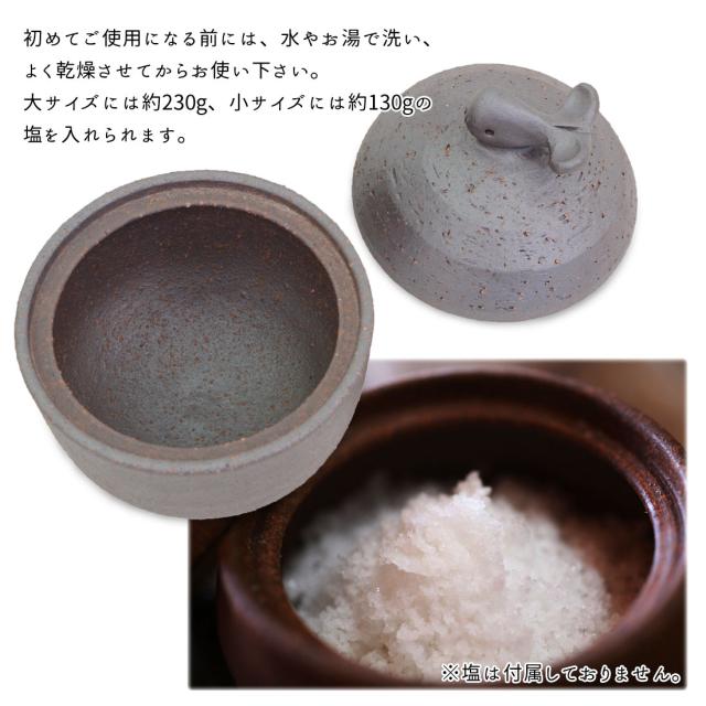 稀に塩壺の表面に塩が吹くことがありますが、焼き締め陶器の特徴ですので心配ありません。