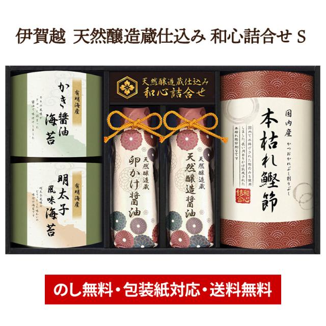 〜2026/2/5お届け 伊賀越 天然醸造蔵仕込み 和心詰合せ S 醤油 しょうゆ 有明海産 海苔 のり 明太子 牡蠣醤油 国内産 鰹節 かつおぶし ごはん 卵かけご飯 お祝い 内祝 お礼 ギフト 香典返し お供え 送料無料 LRL9059548