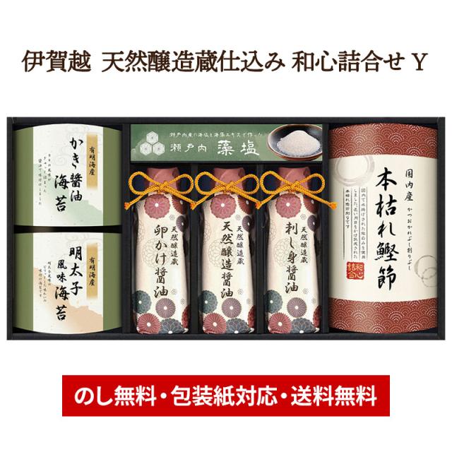 〜2026/2/5お届け 伊賀越 天然醸造蔵仕込み 和心詰合せ Y 醤油 しょうゆ 有明海産 海苔 のり 明太子 牡蠣醤油 国内産 鰹節 かつおぶし 瀬戸内 藻塩 塩 卵かけご飯 刺身醤油 お祝い 内祝 お礼 ギフト 香典返し お供え 送料無料 LRL9059555