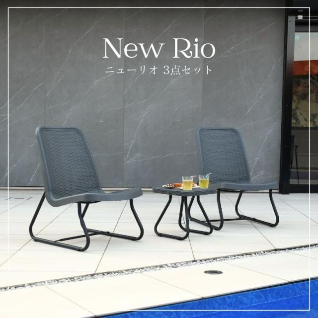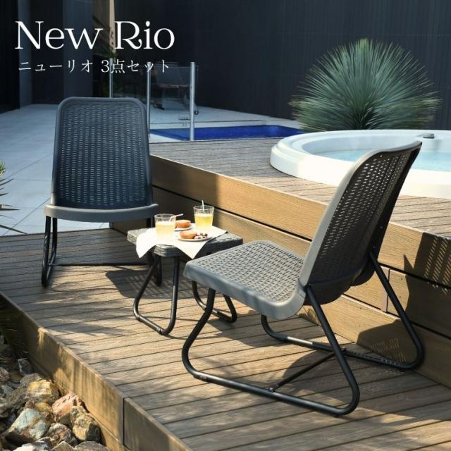 ガーデンチェア ガーデンテーブル ガーデンチェアセット 3点セット 屋外 アウトドア チェアセット 庭 ブラック ベランダ 椅子 ニューリオ3点セット 大型宅配便