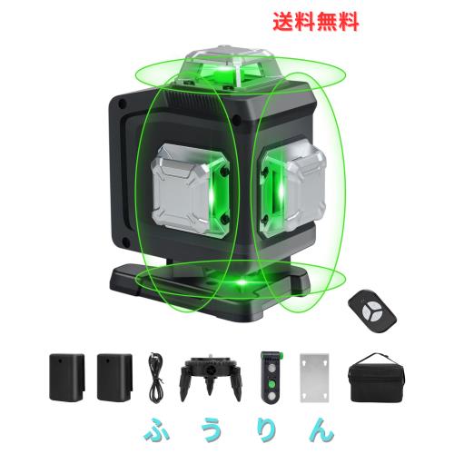 レーザー墨出し器、墨出しレーザー、4Dグリーンレーザー墨出し器、4x360°、水平器 レーザー ビルドとアライメント用、充電式バッテリー