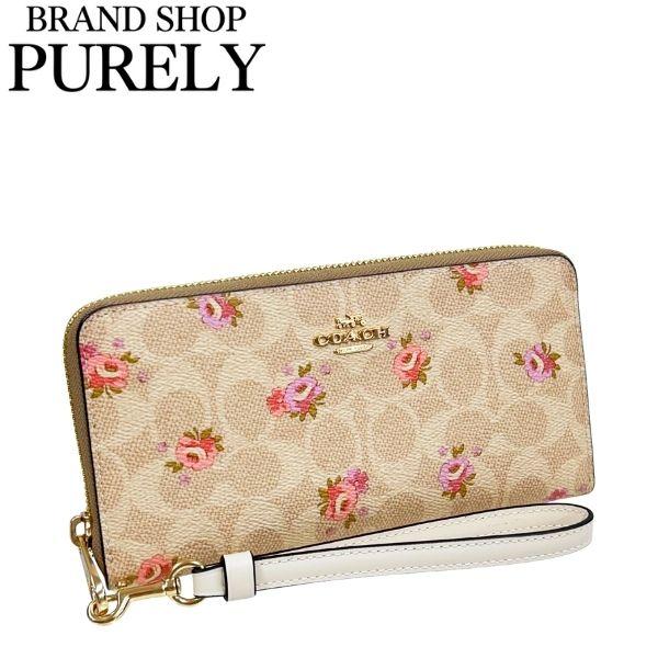 コーチ 財布 レディース COACH 長財布 シグネチャー フローラル プリント ロング ジップ アラウンド ウォレット CAR06 IMSAS サンドマルチ