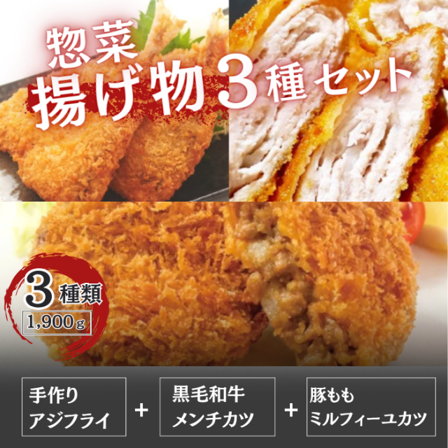 送料無料 揚げ物 3種30個セット 黒毛和牛メンチカツ ミルフィーユカツ 手作りアジフライ 惣菜 セット おかず お弁当 おつまみ 夕食 手づくり 簡単 フライ 時短調理 バラエティー