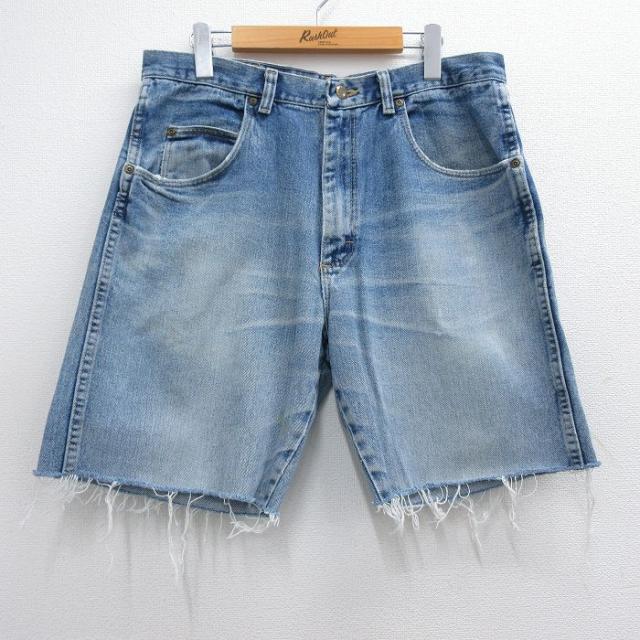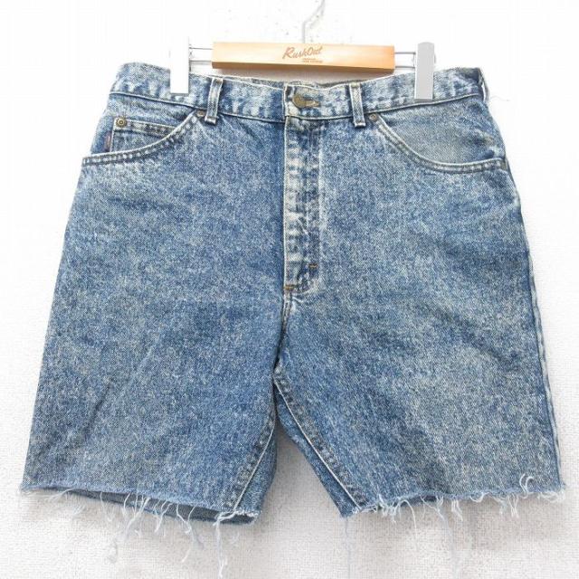 古着 ショート パンツ ショーツ メンズ 90年代 90s ケミカルウォッシュ コットン USA製 紺 ネイビー デニム W33 中古 ボトムス 中古 古着