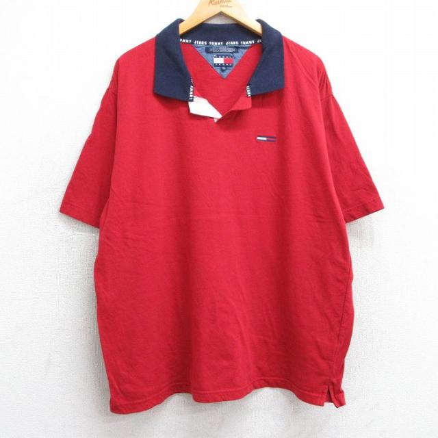 【商品名】 XL★古着 トミーヒルフィガー 半袖 ブランド ポロ シャツ メンズ ワンポイントロゴ 鹿の子 コットン 赤系