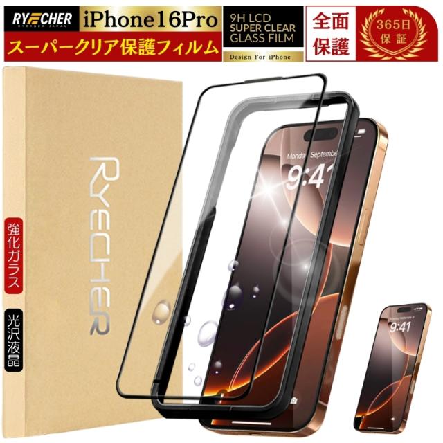 【全面保護・スーパークリア】iPhone16Pro ガラスフィルム 全面保護 iPhone 16Pro 保護フィルム iPhone16 Pro フィルム 全面 アイフォン16プロ スマホフィルム iPhone 16 Pro クリア光沢 アイホン 16プロ グレア RYECHER 液晶保護フィルム