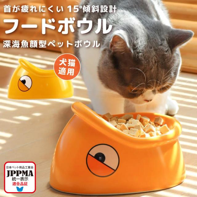 【JPPMA認証】深海魚フードボウル 傾斜 水飲み 犬 猫 陶器 丈夫 ペット 長持ち おしゃれ 餌皿 ネコ 食器 斜め セラミック 水入れ かわいい ごはん台 ペットグッズ こぼれない MSBC