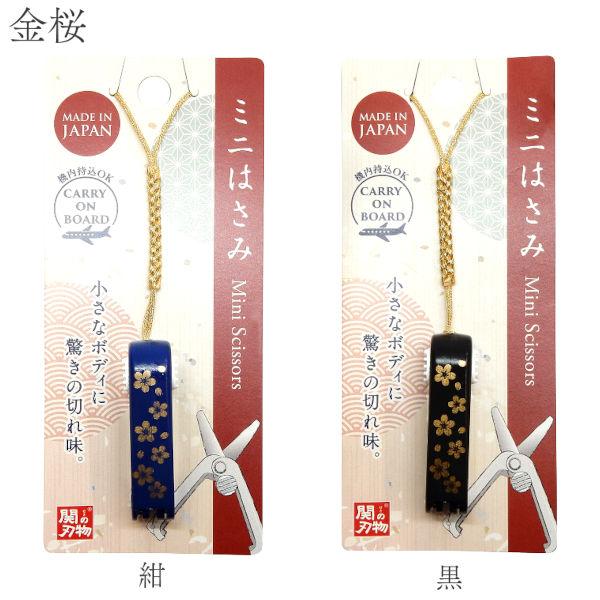 機内持ち込み可 ミニはさみ 金桜 日本製 関の刃物 安全ロック付 携帯用 小さいハサミ 根付 ストラップ付 和柄 ウカイ利器 UC-447W 桜 黒 紺 サクラ さくら