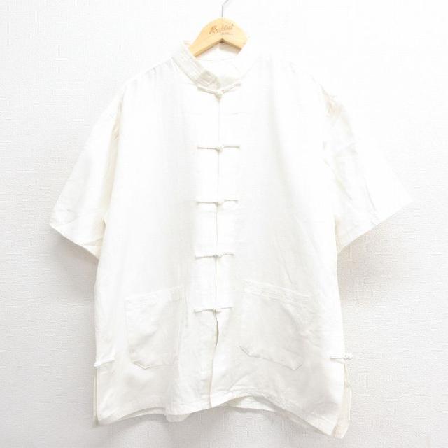 古着 半袖 シャツ メンズ ロング丈 生成り XLサイズ 中古 トップス 中古 古着