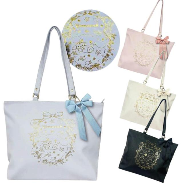 表面の箔押しと大きなリボンのチャームがポイントのかわいいサンリオキャラクタートート