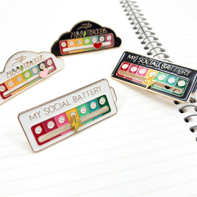 ピンバッジ ブローチ 白黒セット 選べる2種類 かわいい 安全ピン型 気持ちが伝わる 動く 雲 電池 合金 エナメル ソーシャルバッテリーピン ムードトラッカーピン オシャレ 大人 子供 プレゼント 映え 面白ネタ 盛り上がる 学校 友達 バッグ カバン 洋服 楽しい